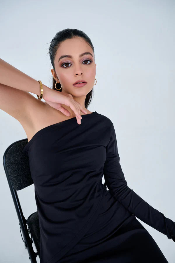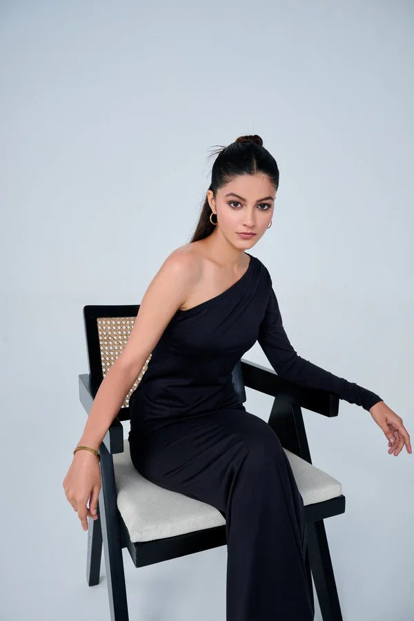 Classic One Shoulder & Skirt Co-ord Set ( Black )